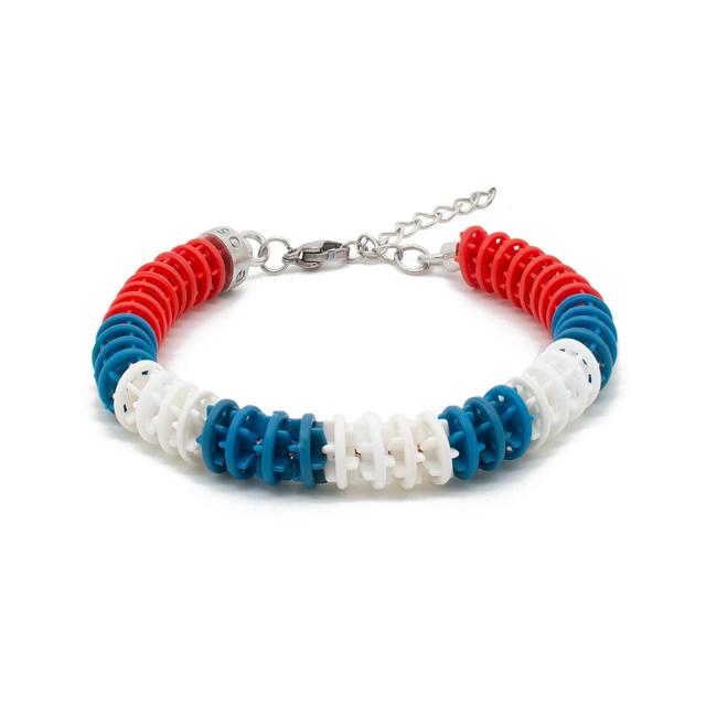 Bracciale in bronzo con elementi in plastica riciclata ricavati dalle corsie dismesse, busta esclusiva Ossidabile.