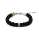 Bracciale in bronzo con elementi in plastica riciclata ricavati dalle corsie dismesse, busta esclusiva Ossidabile.