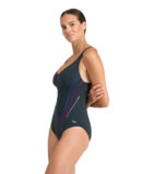 Il Costume Donna Bodylift Marina Eye di Arena presenta una sgambatura bassa, spalline regolabili e cuciture strutturali che valorizzano e sostengono la figura.
