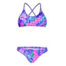 Costume due pezzi da piscina, vita bassa con laccio per poterlo regolare ed essere tranquilli anche per tuffi e virate.