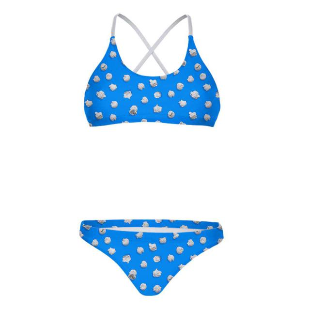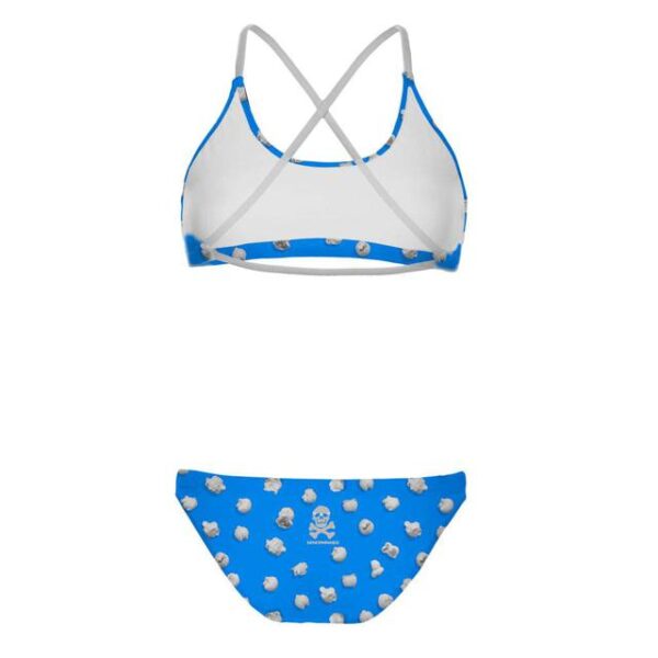 Costume due pezzi da piscina, vita bassa con laccio per poterlo regolare ed essere tranquilli anche per tuffi e virate.