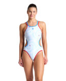 Decorato con la stampa unica della collezione, il costume donna arena One Double Cross Back Fireflow è un costumo intero ideale per l’allenamento e il nuoto frequente.