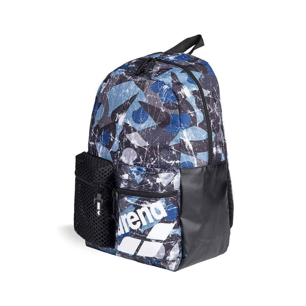 Lo zaino One Go 30 L stampato di Arena combina lo stile urban con la praticità necessaria a bordo vasca.