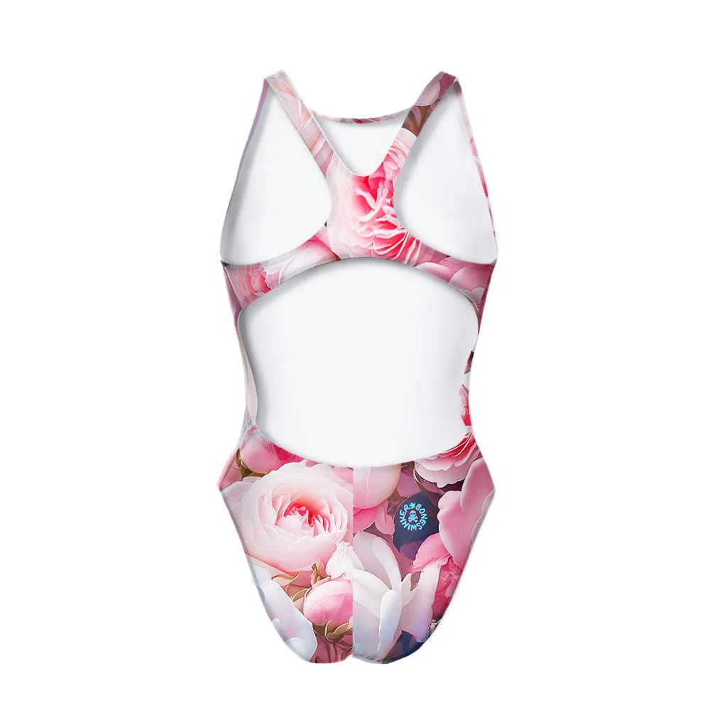 Costume intero sgambato con spalline larghe e aperto sui fianchi – 100%PL PBT resistente al cloro, all’usura e alle sollecitazioni più estreme.