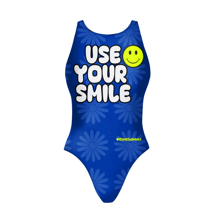 Costume intero sgambato con spalline larghe e aperto sui fianchi – 100%PL PBT resistente al cloro, all’usura e alle sollecitazioni più estreme.