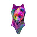 Costume intero sgambato con spalline larghe e aperto sui fianchi – 100%PL PBT resistente al cloro, all’usura e alle sollecitazioni più estreme.