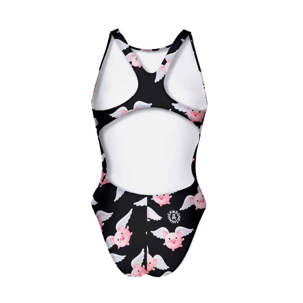 Costume intero sgambato con spalline larghe e aperto sui fianchi – 100%PL PBT resistente al cloro, all’usura e alle sollecitazioni più estreme.