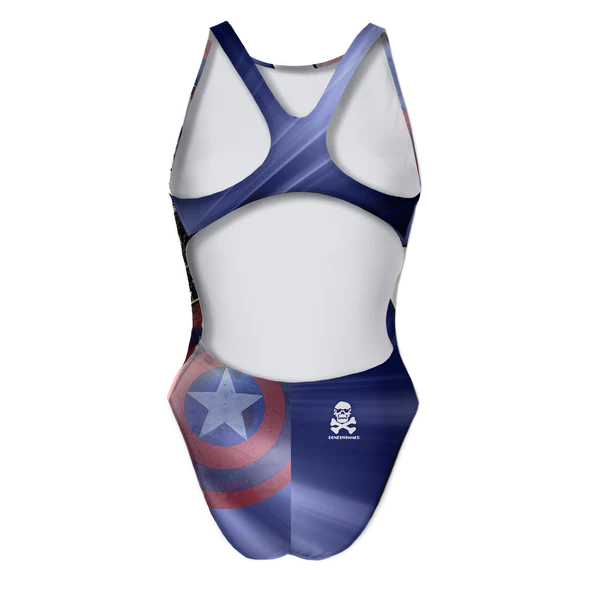 Costume intero sgambato con spalline larghe e aperto sui fianchi – 100%PL PBT resistente al cloro, all’usura e alle sollecitazioni più estreme.